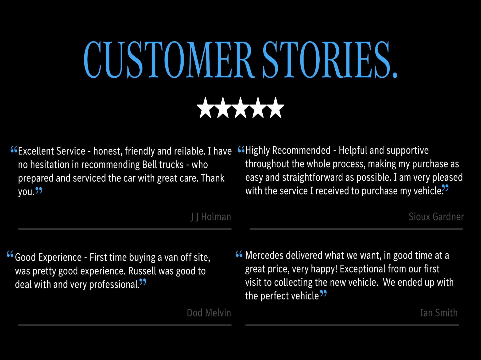 The new-all electric Mercedes-Benz eSprinter has arrived at Bell Truck and Van! This 420 offers an electrifying range of up to 273 miles1 - the larger 113k Wh3 battery can go from 10-80% charge in only 42 minutes. Each new eSprinter owner also benefits from our Premium business support package4. which gives you priority hotline and access to a workshop within 48 hours4, a guarantee that any work required on your van will commence within 4 hours of arriving at our workshop4 plus we will ensure your van has a minimum charge of at least 30 miles of range when it leaves our workshops4. If that isn't enough, your first four services are free as part of our integrated service package7. We also continue to provide our three year, unlimited mileage warranty, eight years’ free battery capacity warranty8 and free Europe-wide, 24/7 breakdown and roadside assistance with MobiloVan, including cover if you run out of charge9.