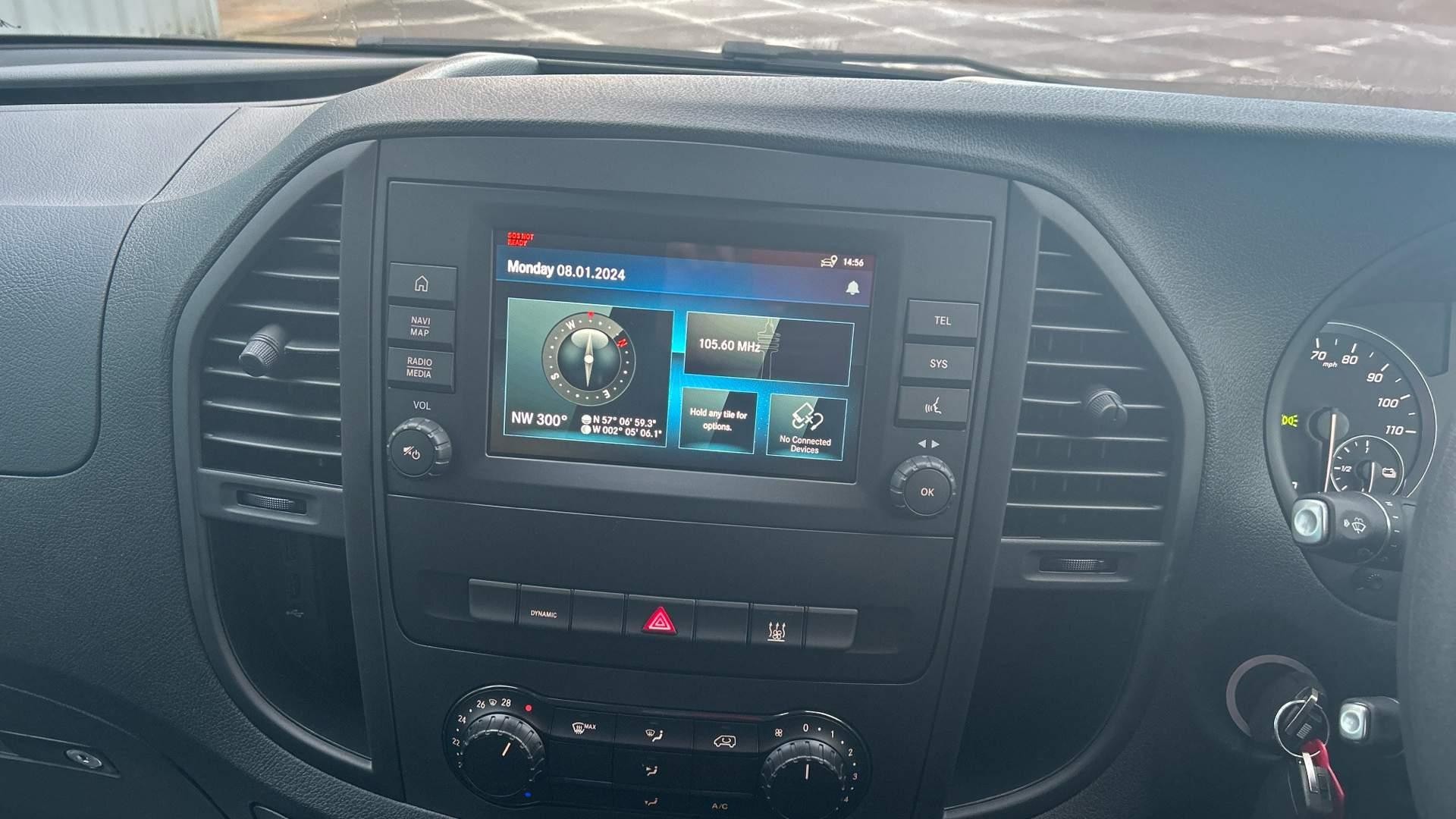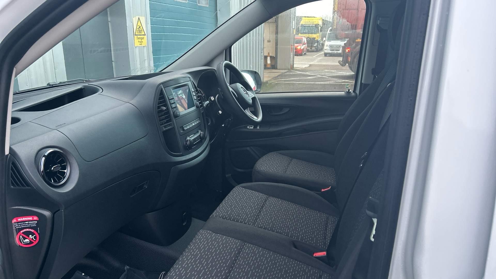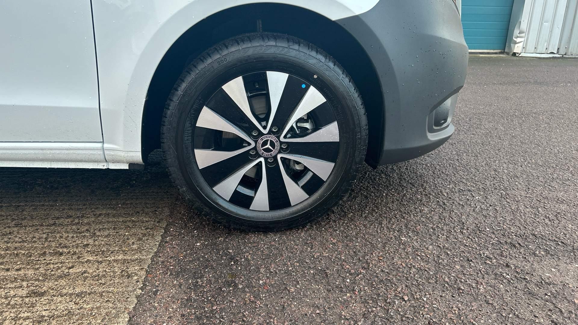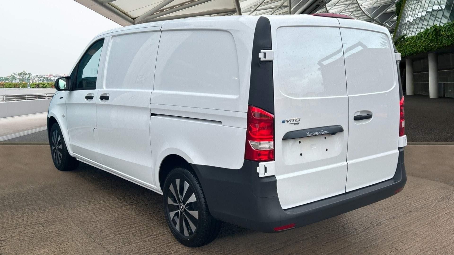 Mercedes Benz eVito PROGRESSIVE van in arctic white - in stock and available for immediate delivery. This all-electric panel van combines the Vito's renowned versatility and sleek aesthetics with all-electric power, boasting a 164 mile range and rapid DC charging up to 80% in just 35 minutes. Features include TEMPMATIC air-con and pre-entry climate control to promote efficient battery usage, reversing camera, 5 spoke alloy wheels, DAB radio, heated driver's comfort seat, cruise control, hill-start assist and more. The eVito also comes with a three-year, unlimited mileage warranty and eight year or 160,000 km battery guarantee for complete peace of mind. Contact us today to book your test drive or video demonstration.