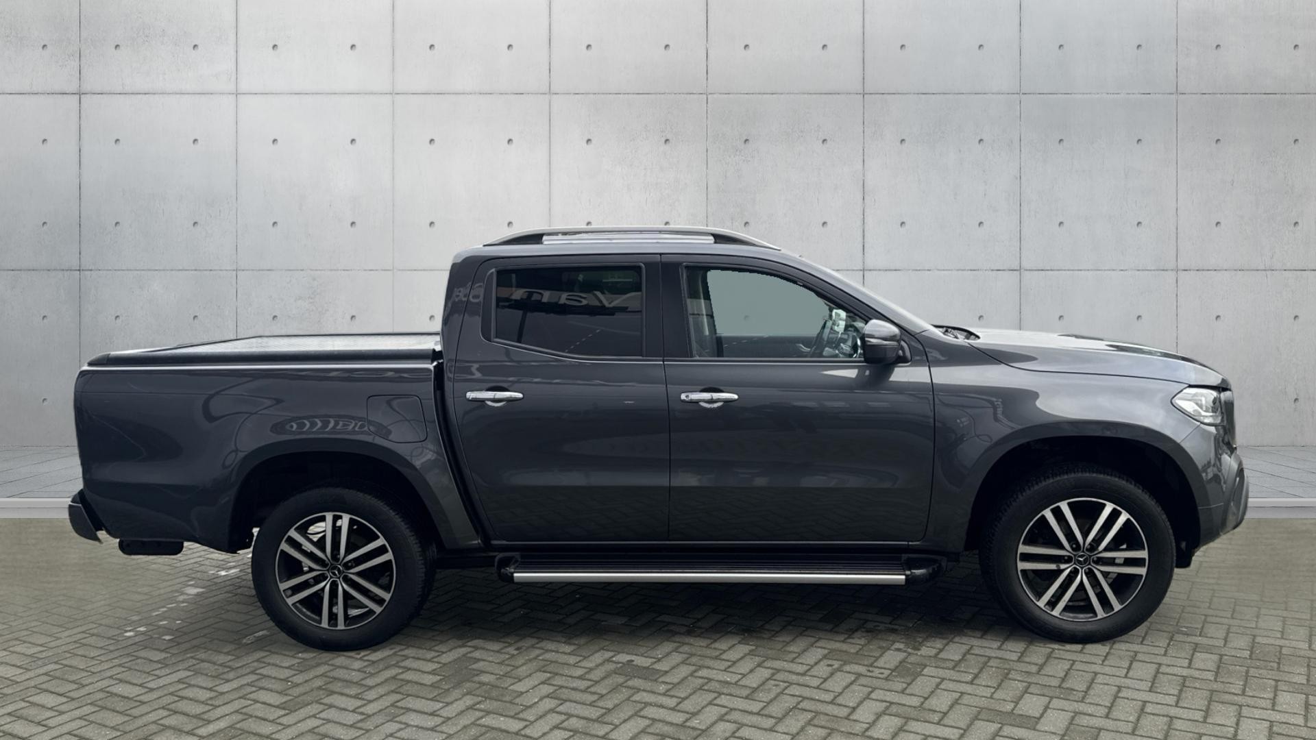 Mercedes-Benz X-Class X-250 Progressive in rock grey metallic. This well-equipped pick-up features air conditioning, reversing camera, LED High Performance headlamps, Style Package which adds tinted glass, electric rear windows, running boards, roof rails, LED exterior lighting (including the headlights) as well as 19-inch alloy wheels, comfort package and winter package. Comes will full dealership service history for your peace of mind. Contact us today to book your test drive or video demonstration.