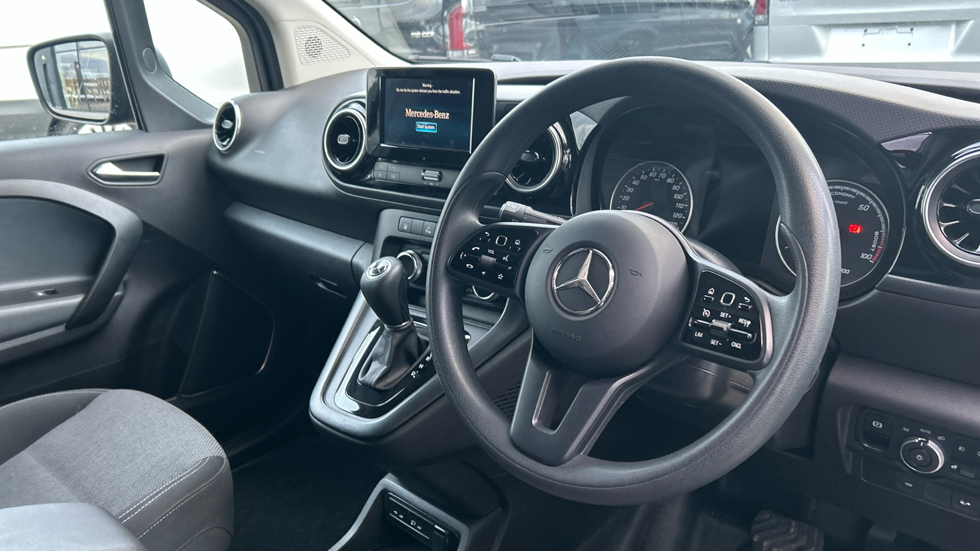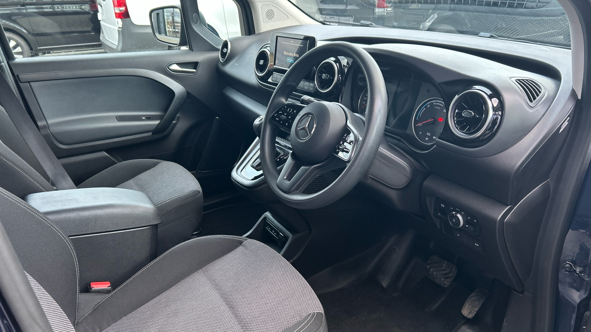 This Mercedes‑Benz eCitan PREMIUM short wheelbase van, finished in stunning cavansite blue metallic paint, is a smart, compact electric van packed with comfort and convenience features. Inside, you’ll find everything you need for an easy day’s work, including air conditioning, DAB radio, Bluetooth, Apple CarPlay, Android Auto, cruise control with speed limiter, auto headlights and rain‑sensing wipers. Parking is simple too, thanks to the reversing camera and front and rear parking sensors. It’s also practical from day one, coming with ply‑lining in the load area and stylish alloy wheels on the outside. This van also comes with the balance of the manufacturer's unlimited mileage warranty until December 2026 as well as full service history. If you’d like to see what the eCitan can really do, get in touch to arrange a demo — we’ll be happy to show you around.